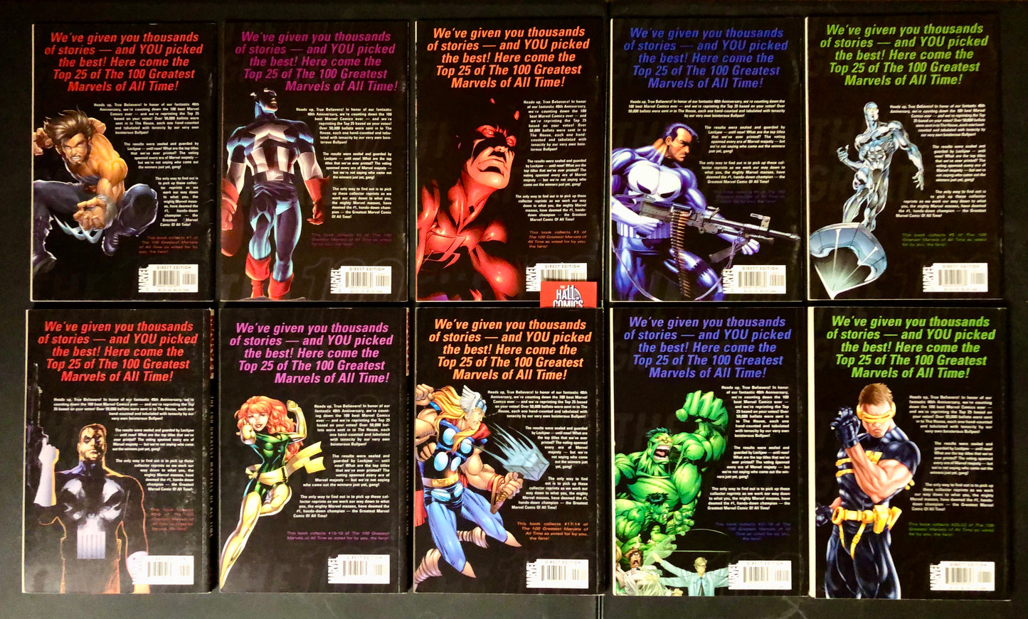 This Full 10x issue bound edition set countdowns and reprints some of what was considered Marvel Comic’s all time classic stories. Including just some of the ones pictured, like Giant-Sized X-Men #1, Amazing Fantasy #15, Avengers #4, Incredible Hulk #181, and many, many more